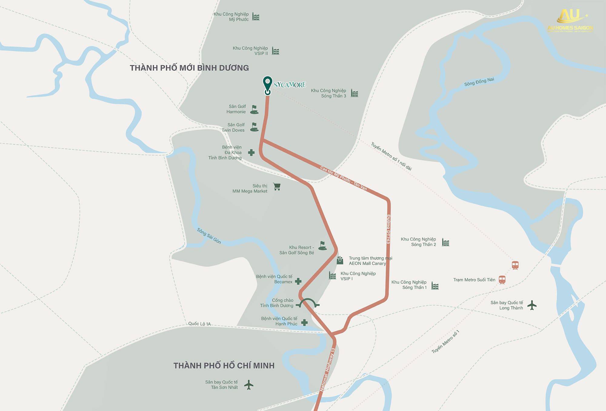 Nằm tại trung tâm thành phố mới Bình Dương, Sycamore sở hữu khả năng kết nối hoàn hảo với các khu vực trọng điểm trong tỉnh: