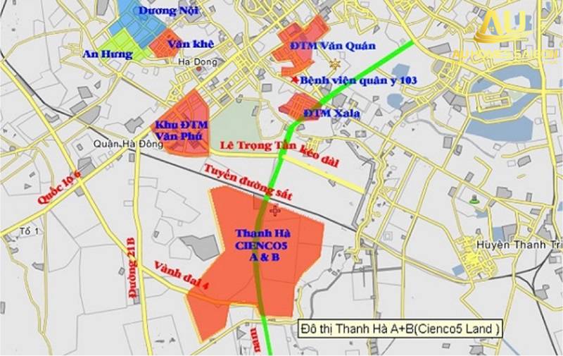 - Khu đô thị Thanh Hà A: Có diện tích 195.51ha thuộc xã Phú Lương (Hà Đông) và xã Cự Khê (huyện Thanh Oai).