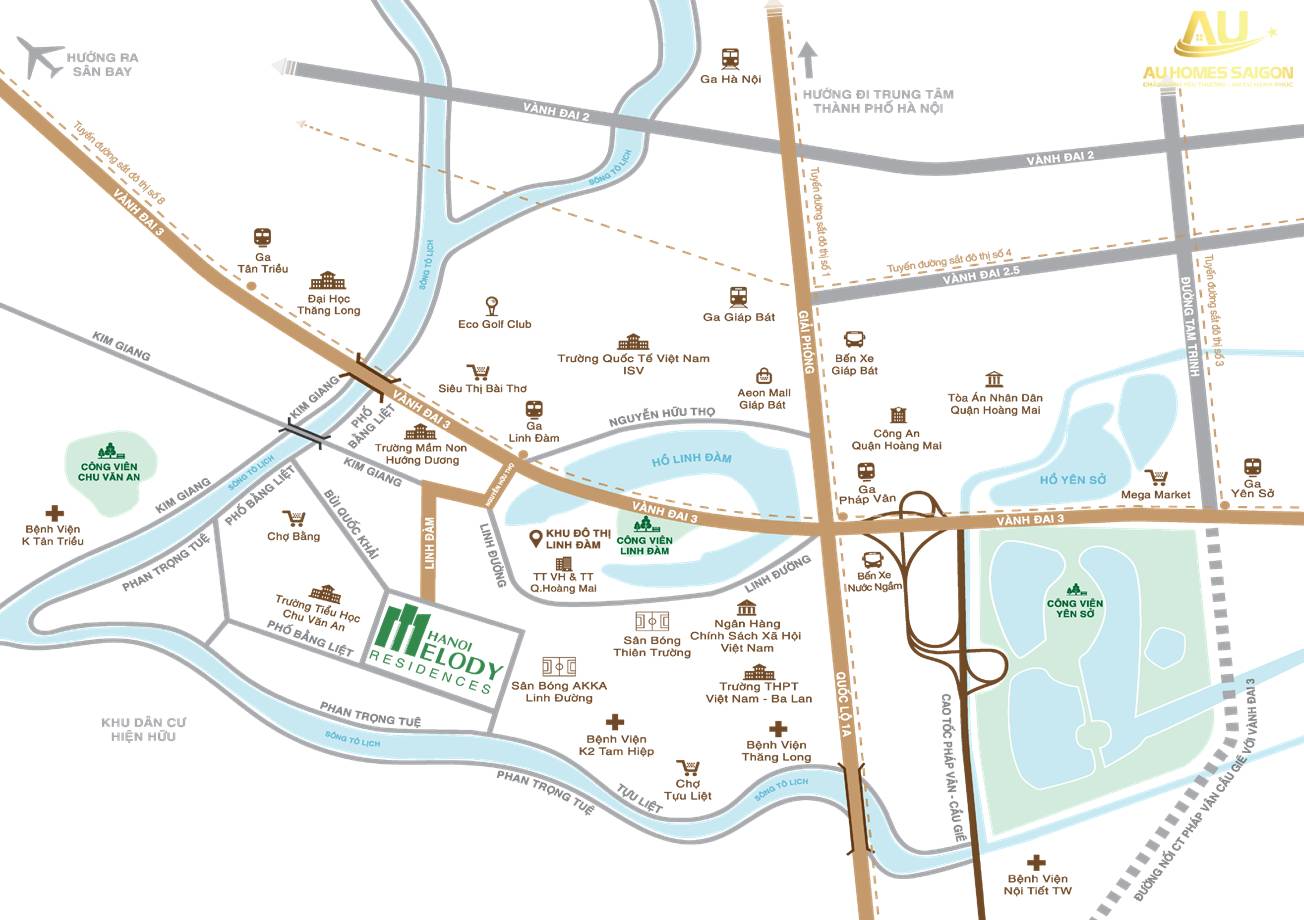 Chung cư Hà Nội Melody Linh Đàm tọa lạc tại vị trí chiến lược với mạng lưới tiện ích nội khu hiện đại và ngoại khu phong phú. Vị trí này không chỉ đáp ứng nhu cầu sống xanh, sống tiện nghi mà còn tạo điều kiện kết nối nhanh chóng đến các khu vực trung tâm, khu chế xuất, khu công nghiệp và các địa điểm trọng điểm khác của thủ đô Hà Nội.