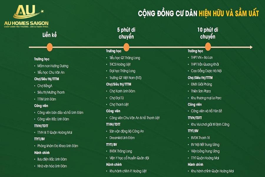 Trong vòng bán kính 3km từ dự án, cư dân có thể dễ dàng di chuyển đến hệ thống trường học liên cấp, chợ, siêu thị tiện lợi, các tòa văn phòng, chuỗi nhà hàng, cà phê, bệnh viện, trường đại học lớn của Hà Nội.