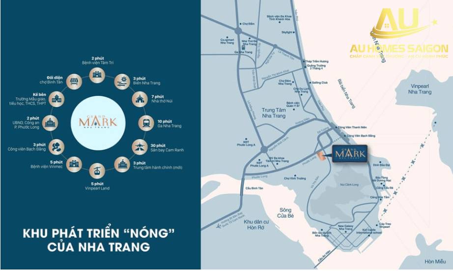 Với địa thế trung tâm và view hướng biển, cư dân Grand Mark Nha Trang dễ dàng tiếp cận các dịch vụ tiện ích nổi bật trong khu vực nhanh chóng chỉ vài phút di chuyển.