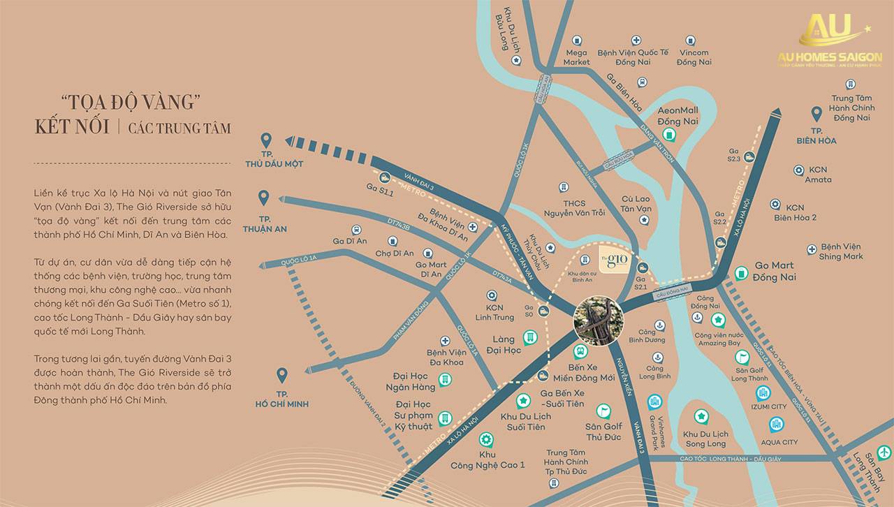 Ngoài ra, từ The Gió Riverside thông qua cầu Đồng Nai, Xa lộ Hà Nội, đường QL 1A, cư dân dễ dàng tiếp cận được rất nhiều công trình hạ tầng tiện ích hiện đại: